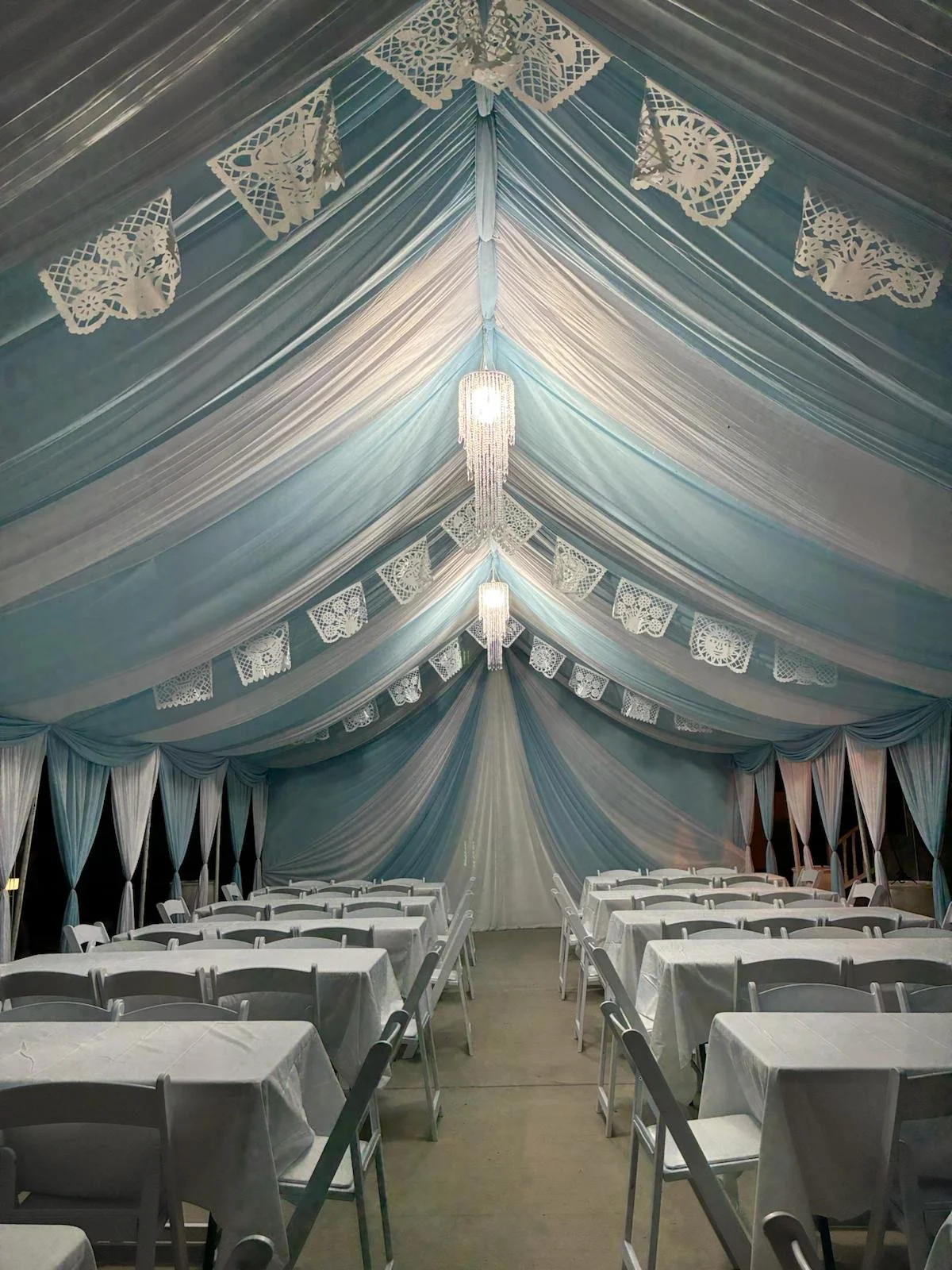 Romero Gallo Rentals is a family-owned company serving Chicagoland western suburbs with tents, tables, chairs, dance floors, and event essentials. With 3+ years of experience, we pride ourselves on reliable service, beautiful setups, and stress-free celebrations. We are located in Oswego, IL. We provide party rental equipment in Illinois and offer free delivery for Oswego, Montgomery, Plainfield, Plano, Yorkville, Aurora, North Aurora, and Sugar Grove.