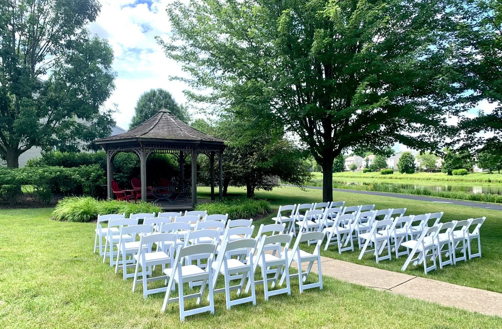 Create a beautiful and comfortable setting for your '“I Do.” We offer a curated selection of ceremony chairs, from classic white folding to elevated styles, thoughtfully arranged to complement your ceremony space and aesthetic.